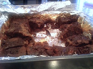 Then just yesterday at the TriStateLUG conference, I got two more mindblowing gifts. The first was a pan of caramel bacon brownies baked and brought down on the train by Kathy Brown. I've had 4 pieces so far, including the one I ate for breakfast this morning. Soooo good. (NOTE: I think that's the correct recipe link; I originally thought it was from a different website, but I guess I was thinking of bacon waffles).